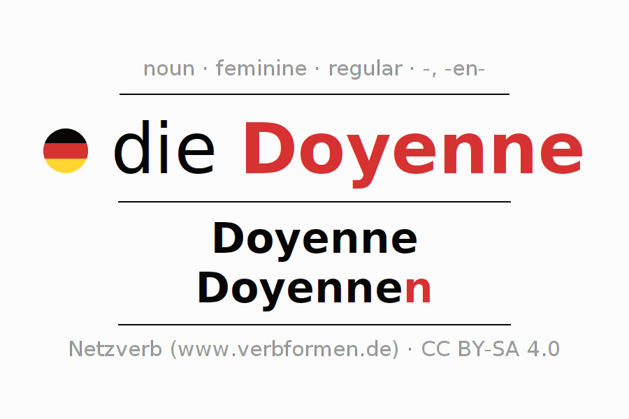 - Singular: die Doyenne, der Doyenne, der Doyenne, die Doyenne