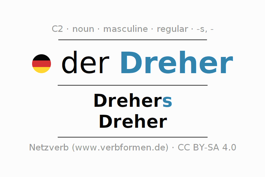 - Singular: der Dreher, des Drehers, dem Dreher, den Dreher