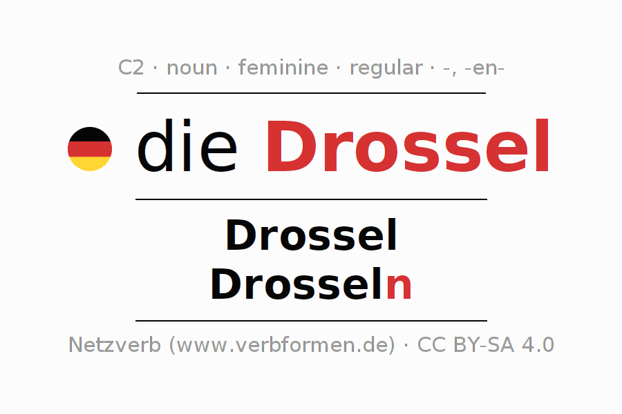 - Plural: die Drosseln, der Drosseln, den Drosseln, die Drosseln
