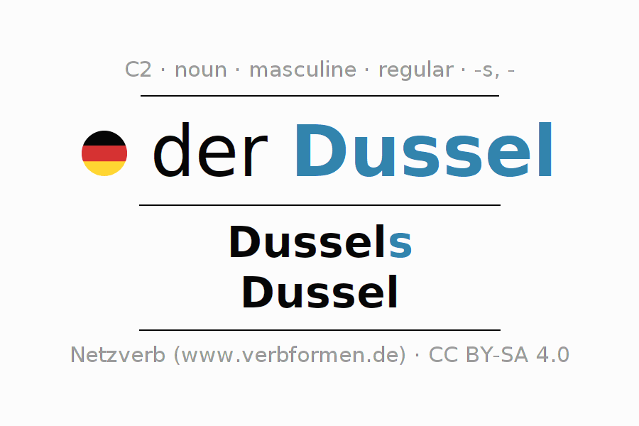 - Singular: der Dussel, des Dussels, dem Dussel, den Dussel