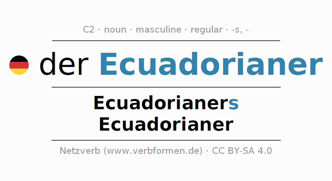 - Singular: der Ecuadorianer, des Ecuadorianers, dem Ecuadorianer, den Ecuadorianer