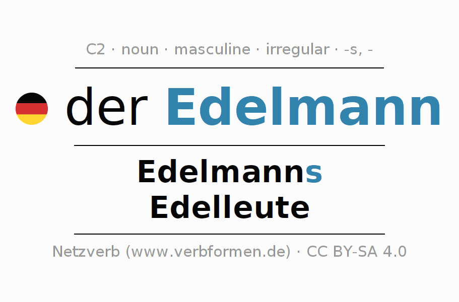 - Singular: der Edelmann, des Edelmanns, dem Edelmann, den Edelmann