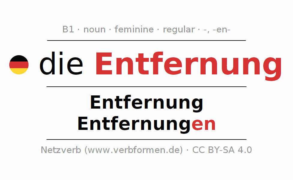 - Singular: die Entfernung, der Entfernung, der Entfernung, die Entfernung