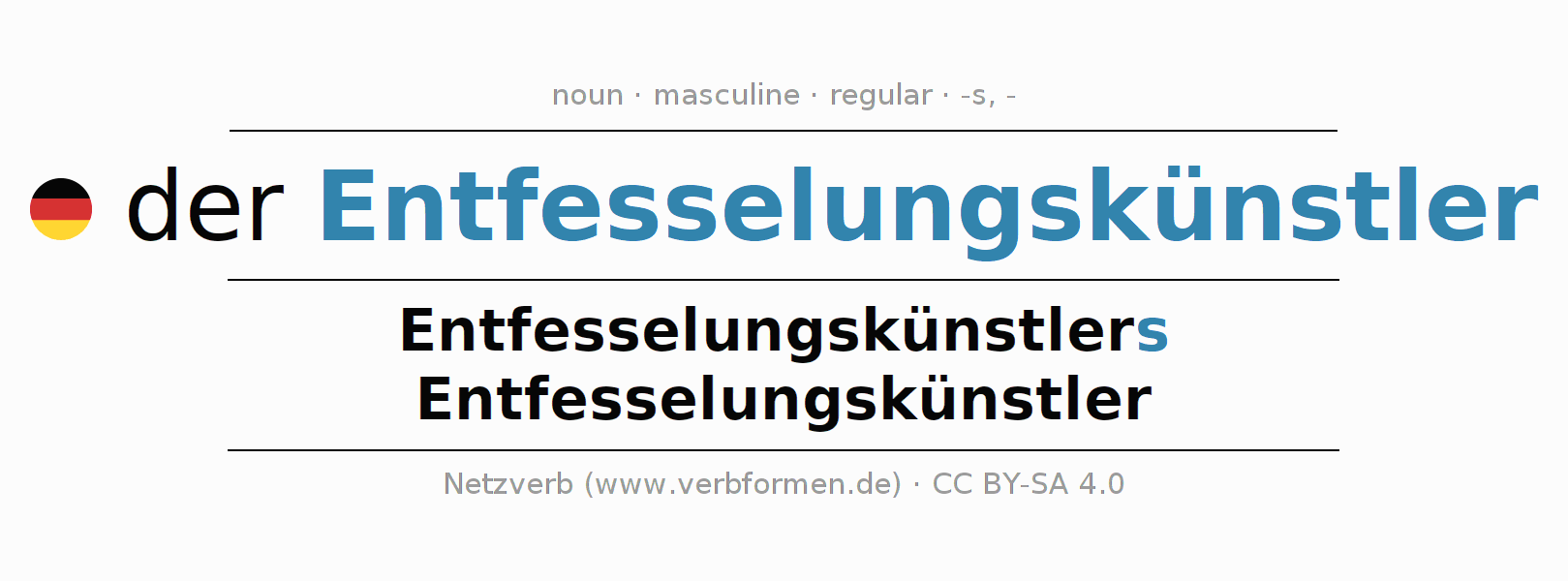 - Singular: der Entfesselungskünstler, des Entfesselungskünstlers, dem Entfesselungskünstler, den Entfesselungskünstler