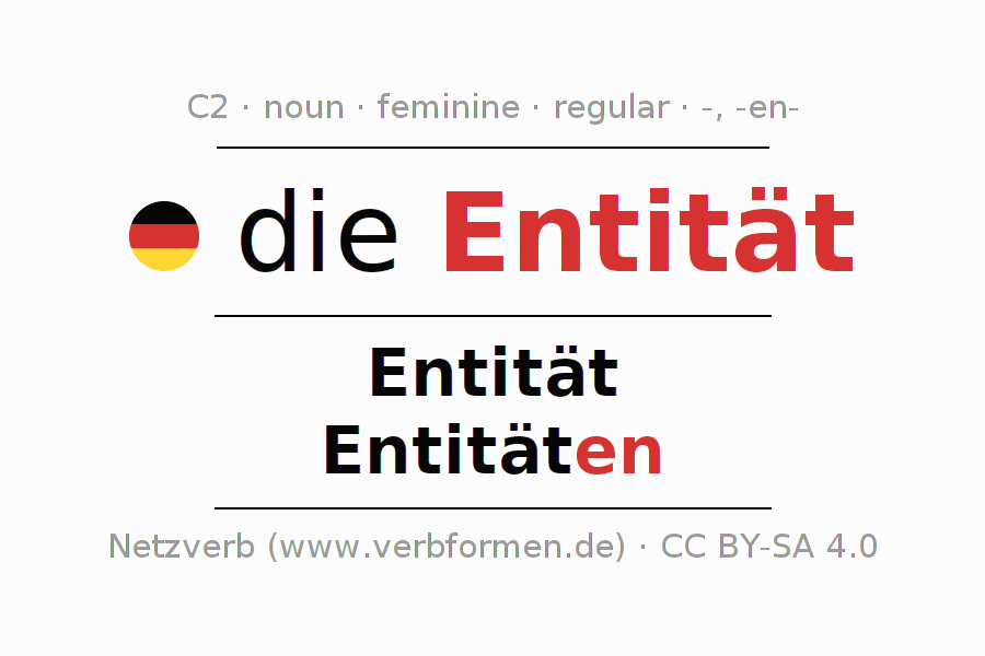 - Singular: die Entität, der Entität, der Entität, die Entität