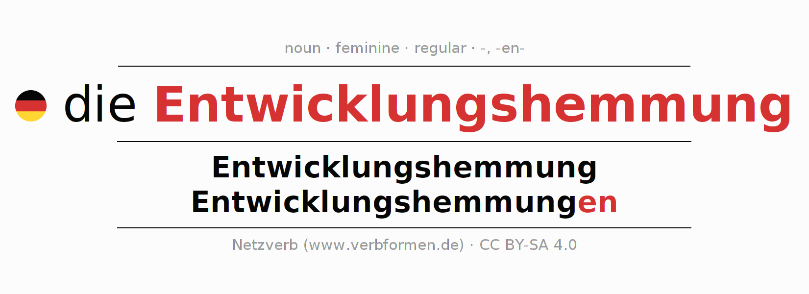 | Nom. | die Entwicklungshemmung | die Entwicklungshemmungen |