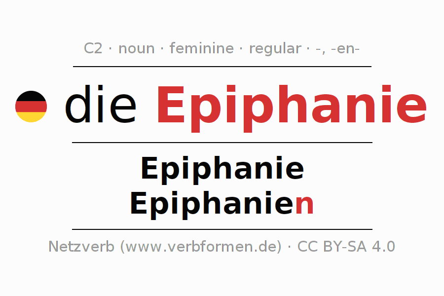 - Singular: die Epiphanie, der Epiphanie, der Epiphanie, die Epiphanie
