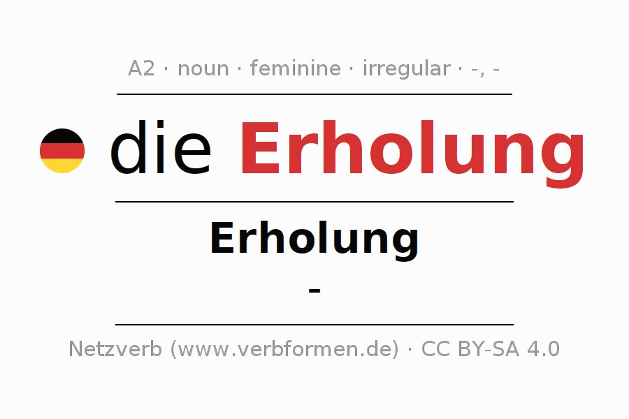 - Singular: die Erholung, der Erholung, der Erholung, die Erholung