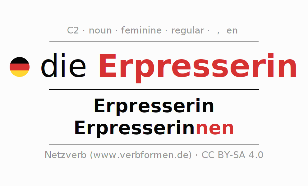 | Nom. | die Erpresserin | die Erpresserinnen |
