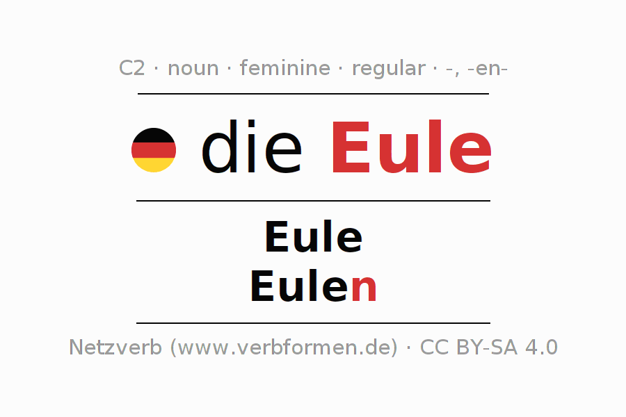 - Plural: die Eulen, der Eulen, den Eulen, die Eulen