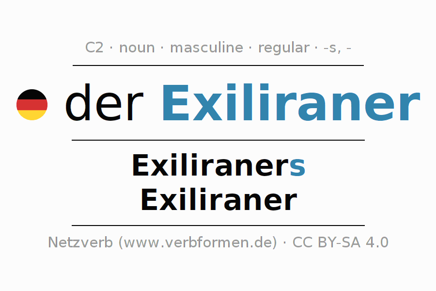 - Singular: der Exiliraner, des Exiliraners, dem Exiliraner, den Exiliraner