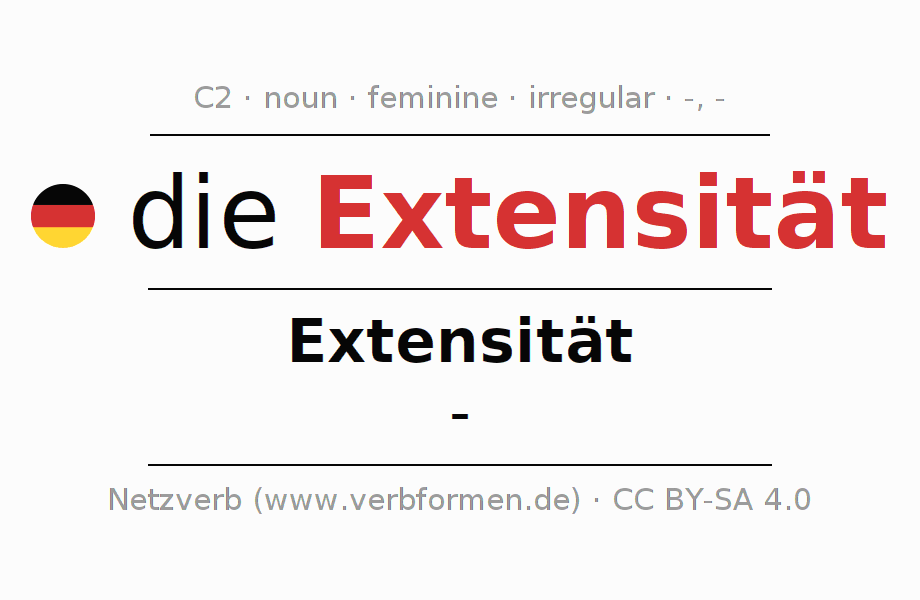 - Singular: die Extensität, der Extensität, der Extensität, die Extensität