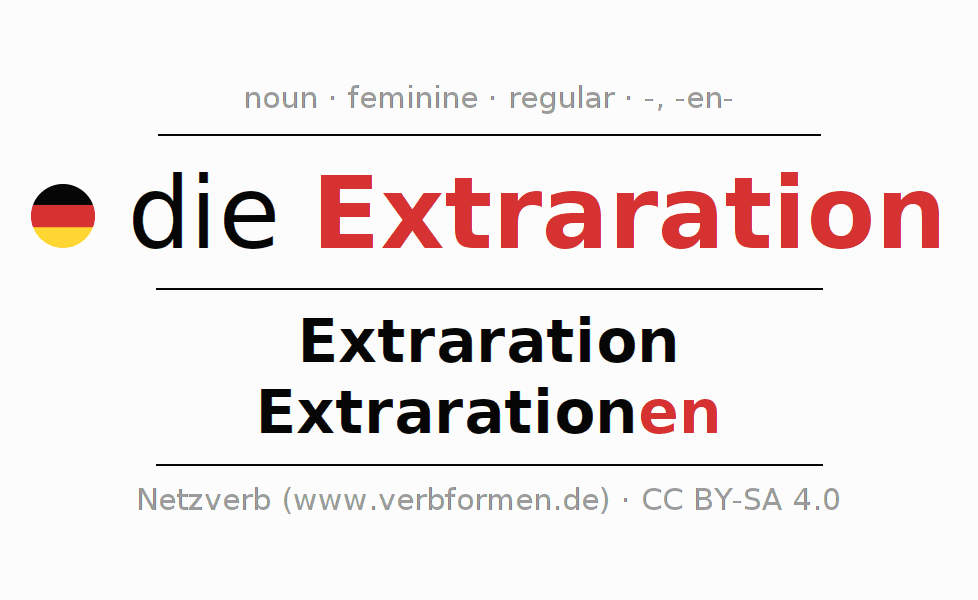 - Singular: die Extraration, der Extraration, der Extraration, die Extraration