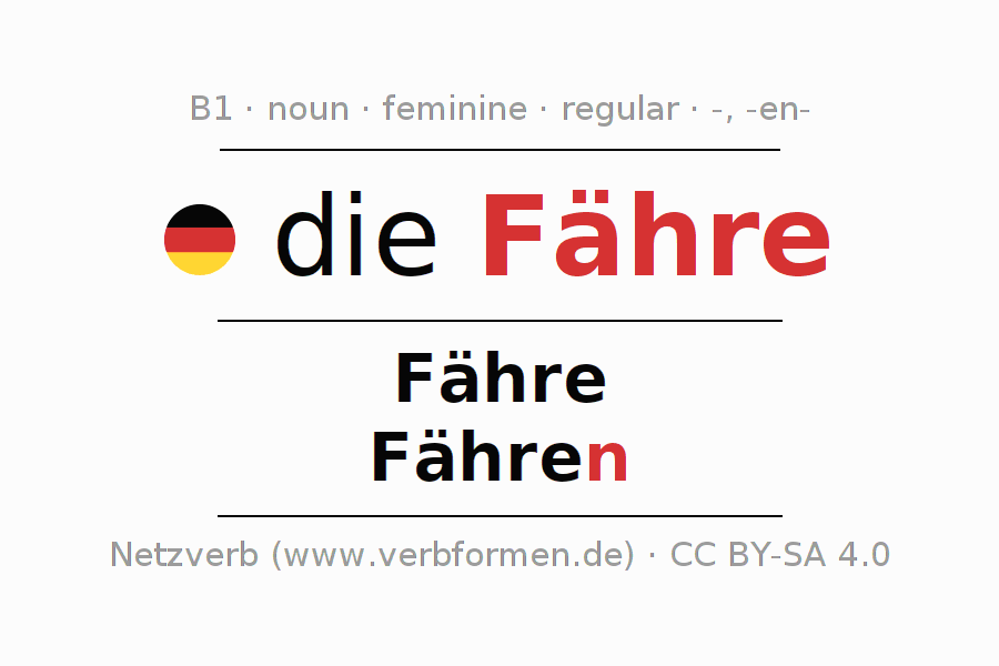 - Plural: die Fähren, der Fähren, den Fähren, die Fähren