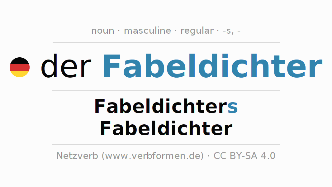 - Plural: die Fabeldichter, der Fabeldichter, den Fabeldichtern, die Fabeldichter