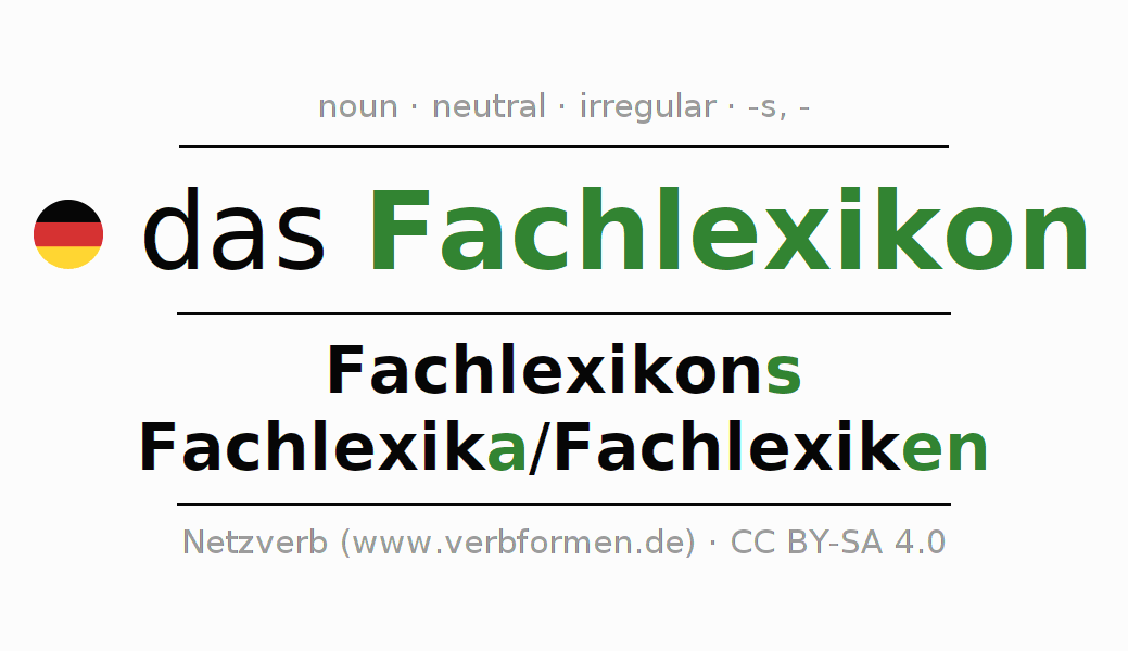 - Singular: das Fachlexikon, des Fachlexikons, dem Fachlexikon, das Fachlexikon