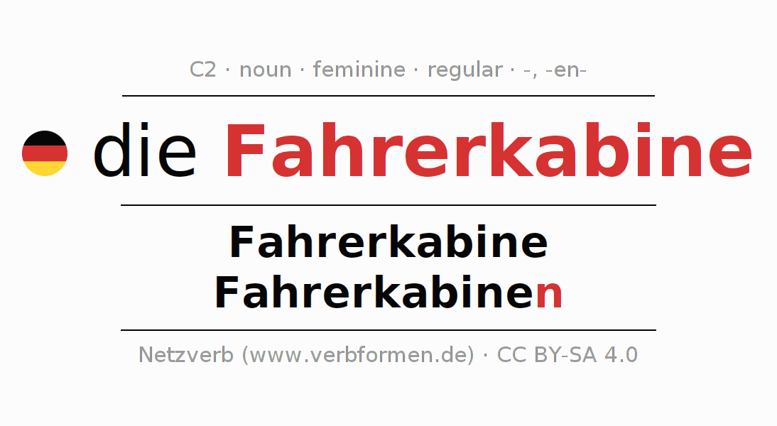 - Singular: die Fahrerkabine, der Fahrerkabine, der Fahrerkabine, die Fahrerkabine