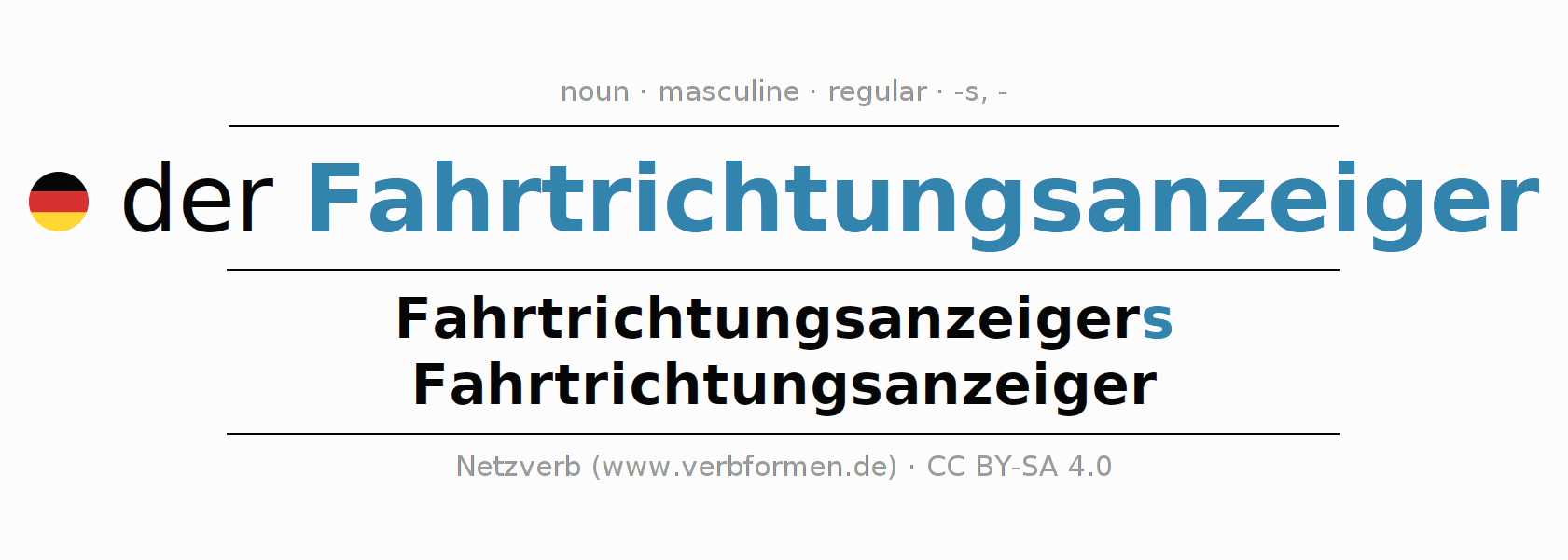 | Nom. | der Fahrtrichtungsanzeiger | die Fahrtrichtungsanzeiger |