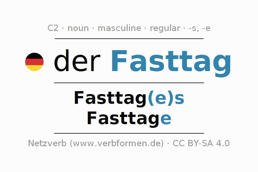 - Plural: die Fasttage, der Fasttage, den Fasttagen, die Fasttage