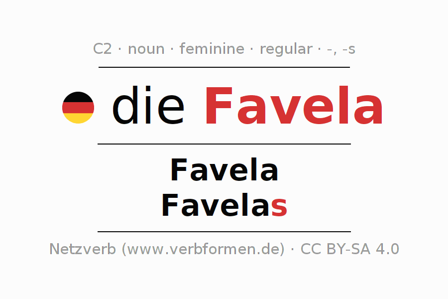 - Plural: die Favelas, der Favelas, den Favelas, die Favelas
