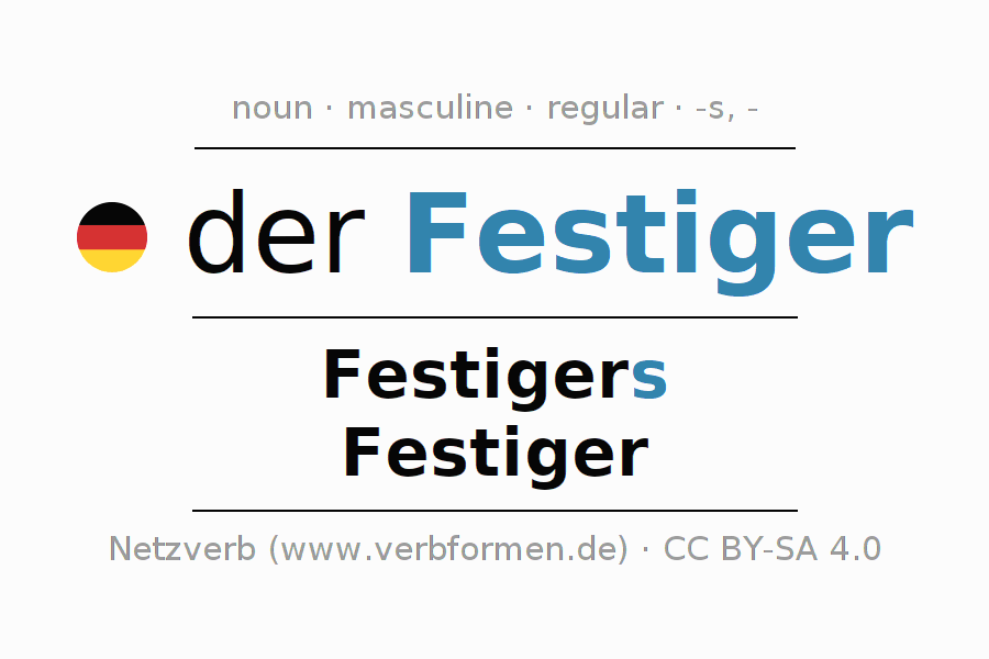 - Singular: der Festiger, des Festigers, dem Festiger, den Festiger