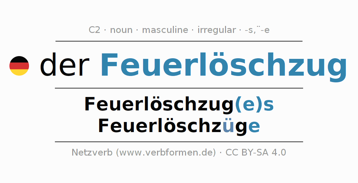 | Nom. | der Feuerlöschzug | die Feuerlöschzüge |