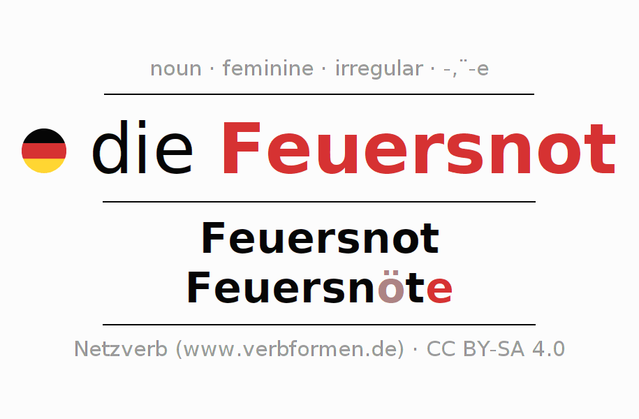 - Singular: die Feuersnot, der Feuersnot, der Feuersnot, die Feuersnot