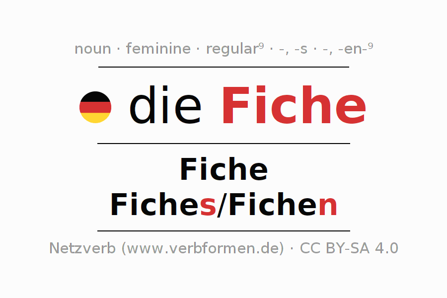 - Singular: die Fiche, der Fiche, der Fiche, die Fiche
