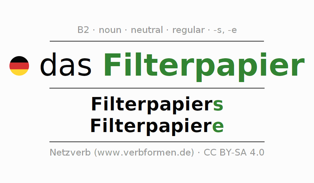 - Singular: das Filterpapier, des Filterpapiers, dem Filterpapier, das Filterpapier