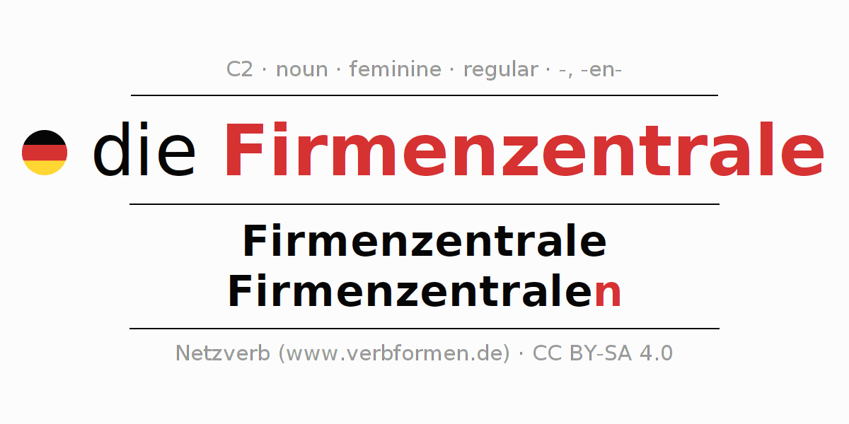 - Singular: die Firmenzentrale, der Firmenzentrale, der Firmenzentrale, die Firmenzentrale