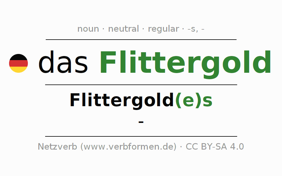 - Singular: das Flittergold, des Flittergold(e)s, dem Flittergold(e), das Flittergold