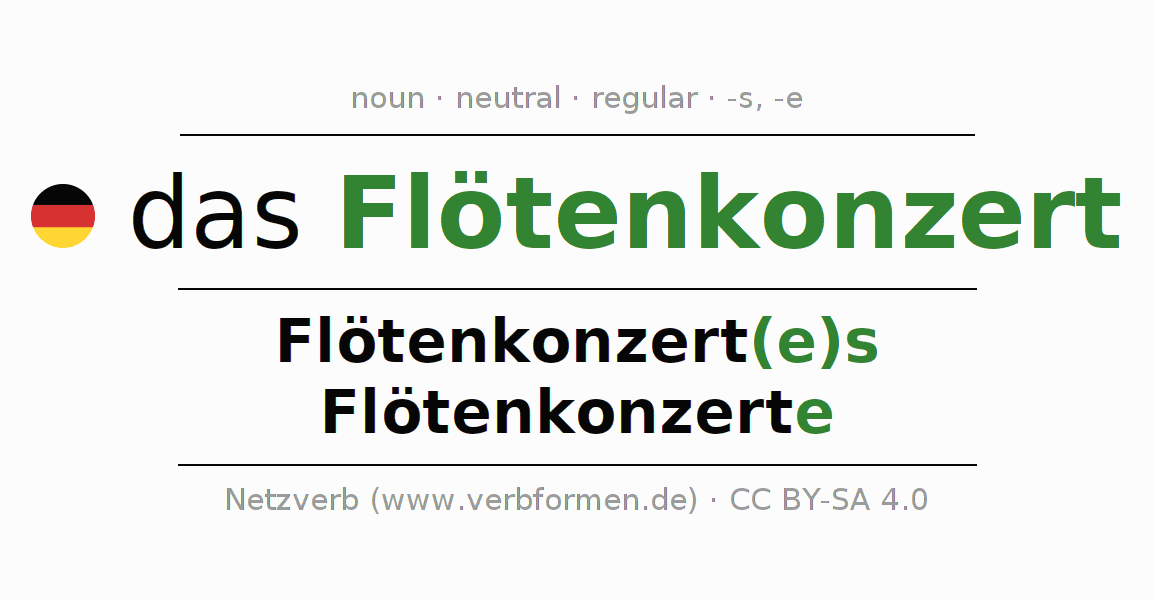 - Singular: das Flötenkonzert, des Flötenkonzert(e)s, dem Flötenkonzert(e), das Flötenkonzert
