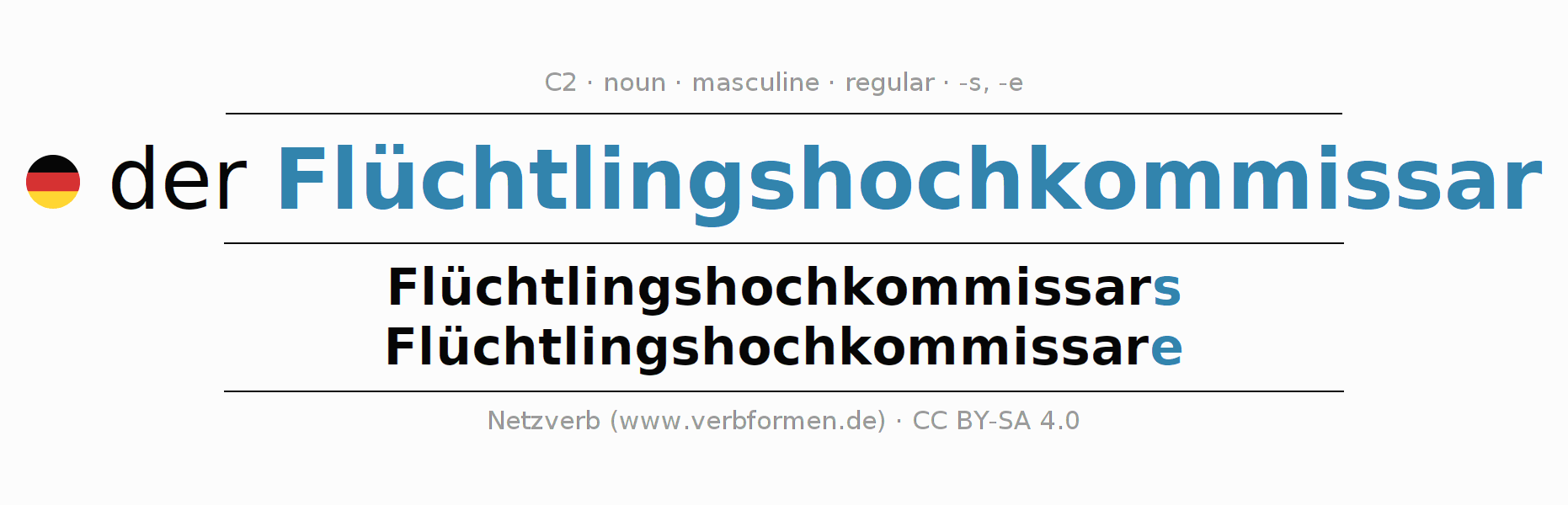 | Acc. | den Flüchtlingshochkommissar | die Flüchtlingshochkommissare |