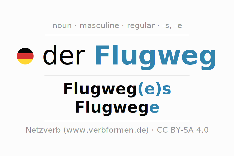 - Singular: der Flugweg, des Flugweg(e)s, dem Flugweg(e), den Flugweg
