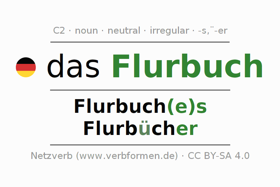 - Plural: die Flurbücher, der Flurbücher, den Flurbüchern, die Flurbücher