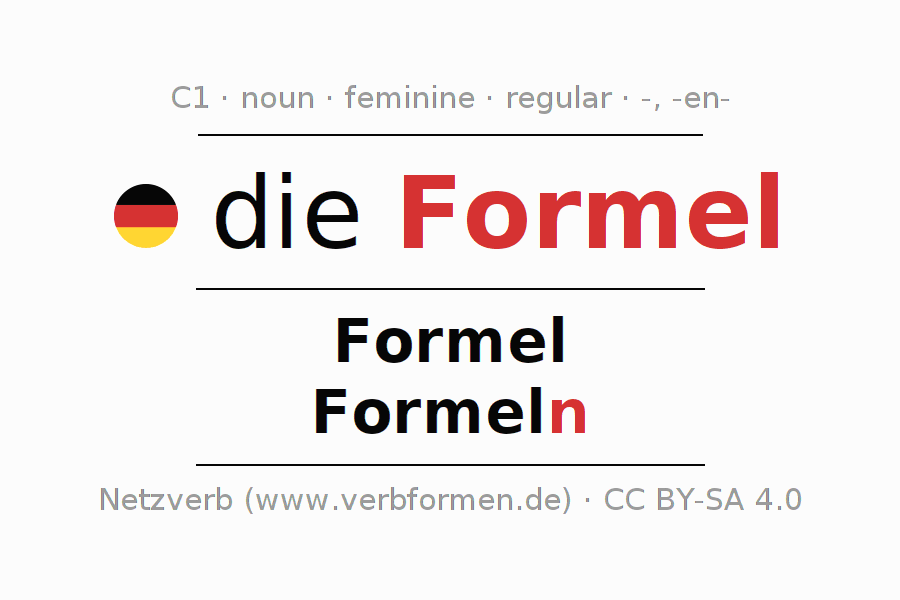 - Plural: die Formeln, der Formeln, den Formeln, die Formeln