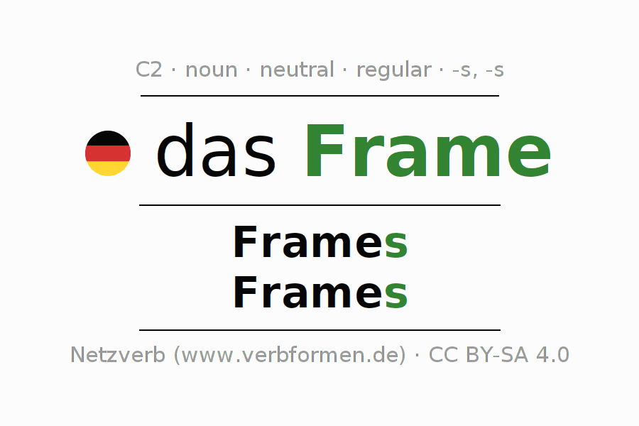 - Plural: die Frames, der Frames, den Frames, die Frames