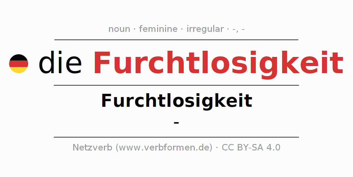 - Singular: die Furchtlosigkeit, der Furchtlosigkeit, der Furchtlosigkeit, die Furchtlosigkeit