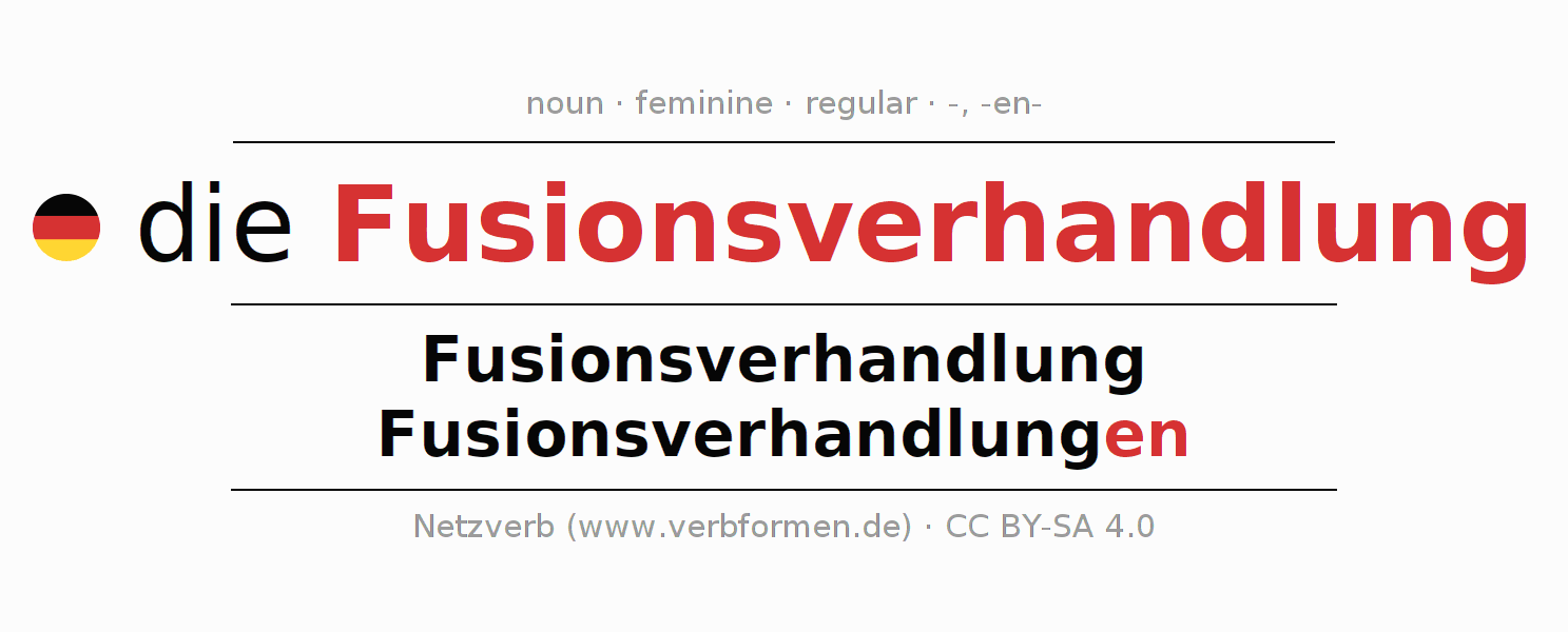 - Singular: die Fusionsverhandlung, der Fusionsverhandlung, der Fusionsverhandlung, die Fusionsverhandlung