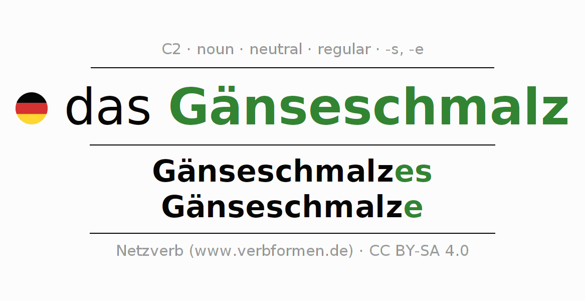 | Dat. | dem Gänseschmalz(e) | den Gänseschmalzen |