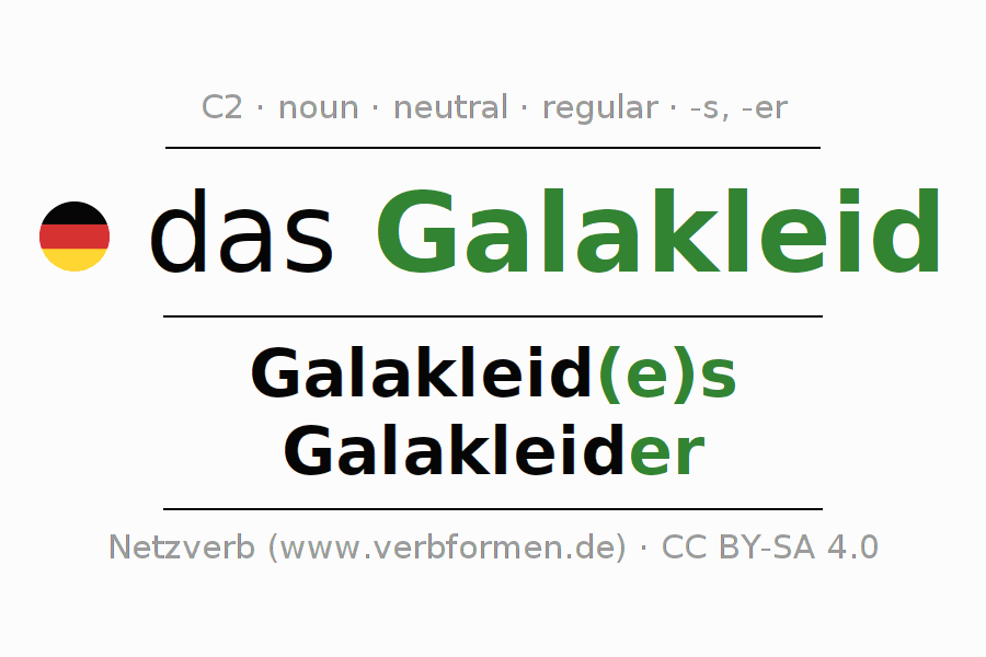 - Plural: die Galakleider, der Galakleider, den Galakleidern, die Galakleider