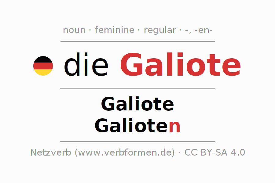 - Plural: die Galioten, der Galioten, den Galioten, die Galioten