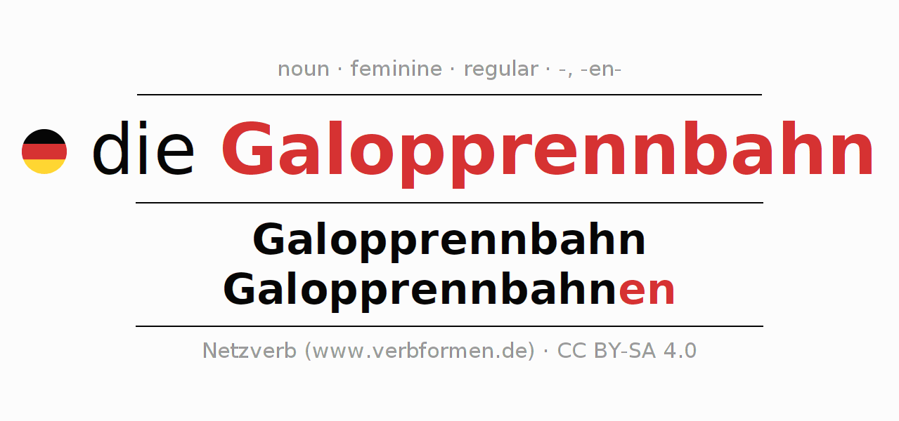 - Singular: die Galopprennbahn, der Galopprennbahn, der Galopprennbahn, die Galopprennbahn