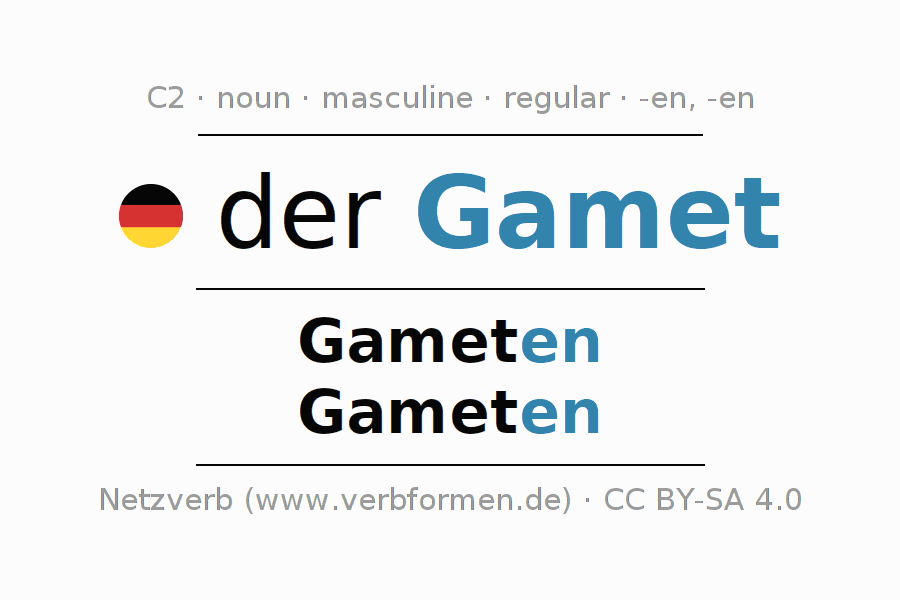 - Singular: der Gamet, des Gameten, dem Gameten, den Gameten