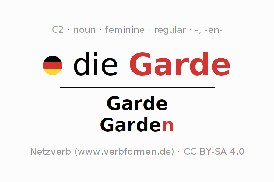 - Singular: die Garde, der Garde, der Garde, die Garde