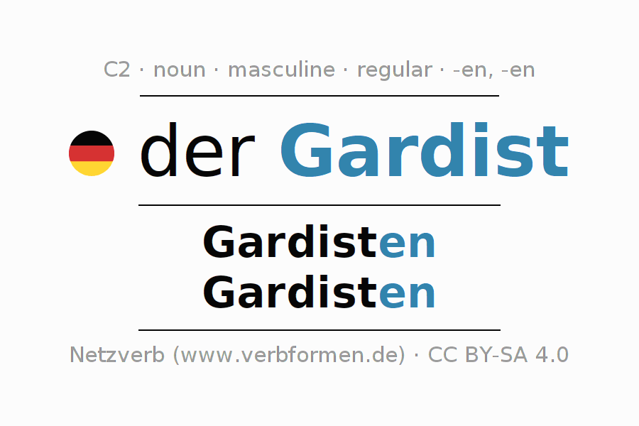 - Plural: die Gardisten, der Gardisten, den Gardisten, die Gardisten