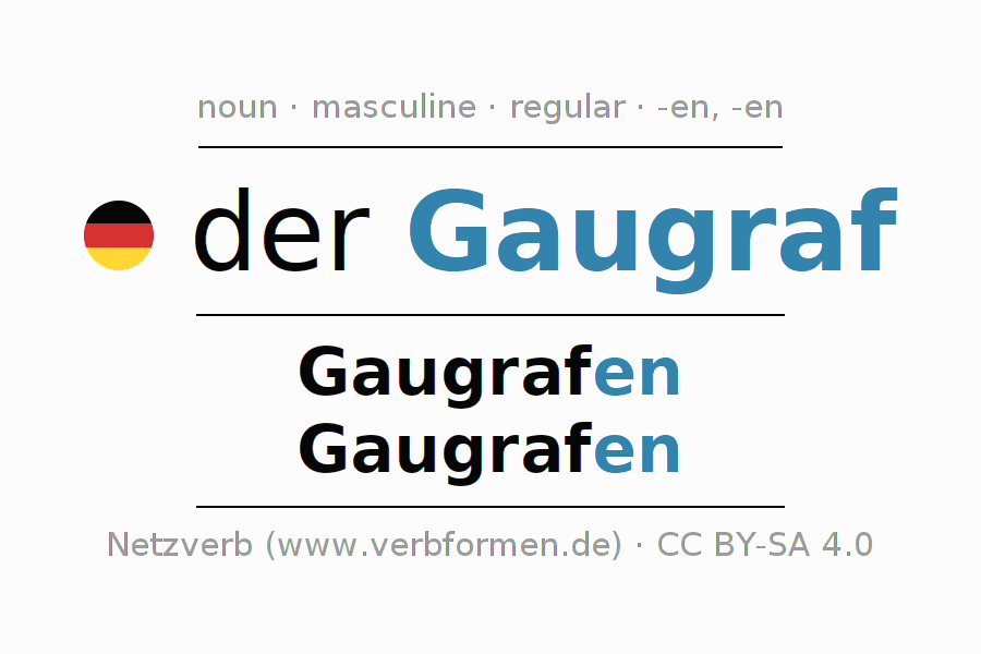 - Singular: der Gaugraf, des Gaugrafen, dem Gaugrafen, den Gaugrafen