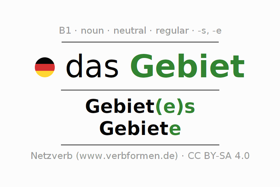 - Plural: die Gebiete, der Gebiete, den Gebieten, die Gebiete