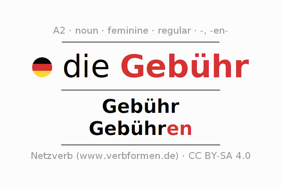 - Plural: die Gebühren, der Gebühren, den Gebühren, die Gebühren
