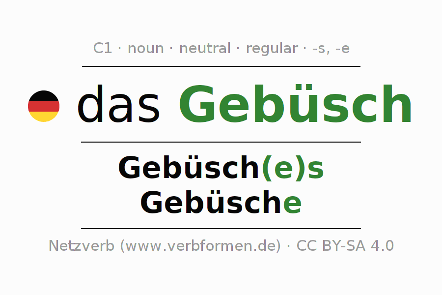 | Acc. | das Gebüsch | die Gebüsche |